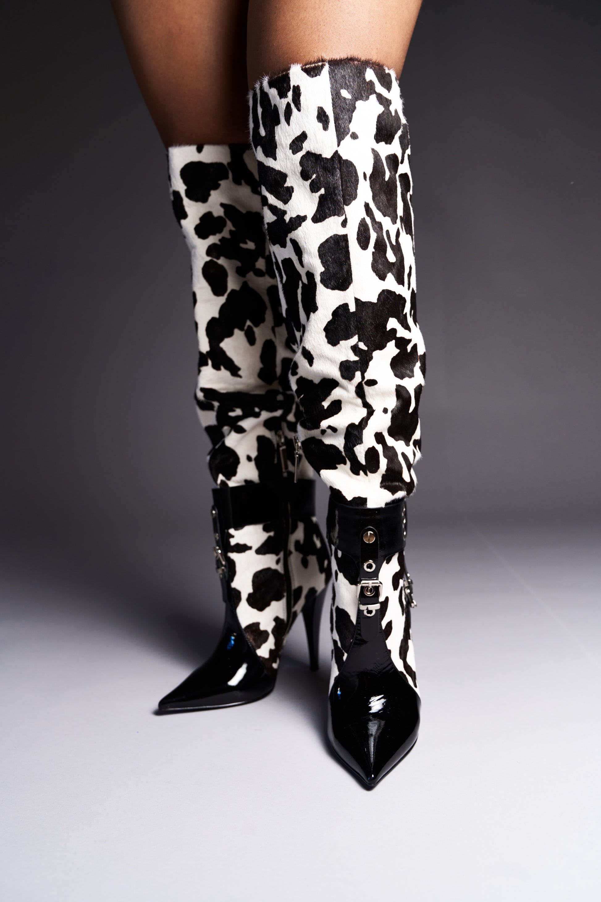 Meet the Buttercup Cow Print Boots — a bold blend of Western charm and high-end fashion. Designed under our After Twelve collection, this fourth release embodies everything the brand stands for: haute design, premium materials, and undeniable style.