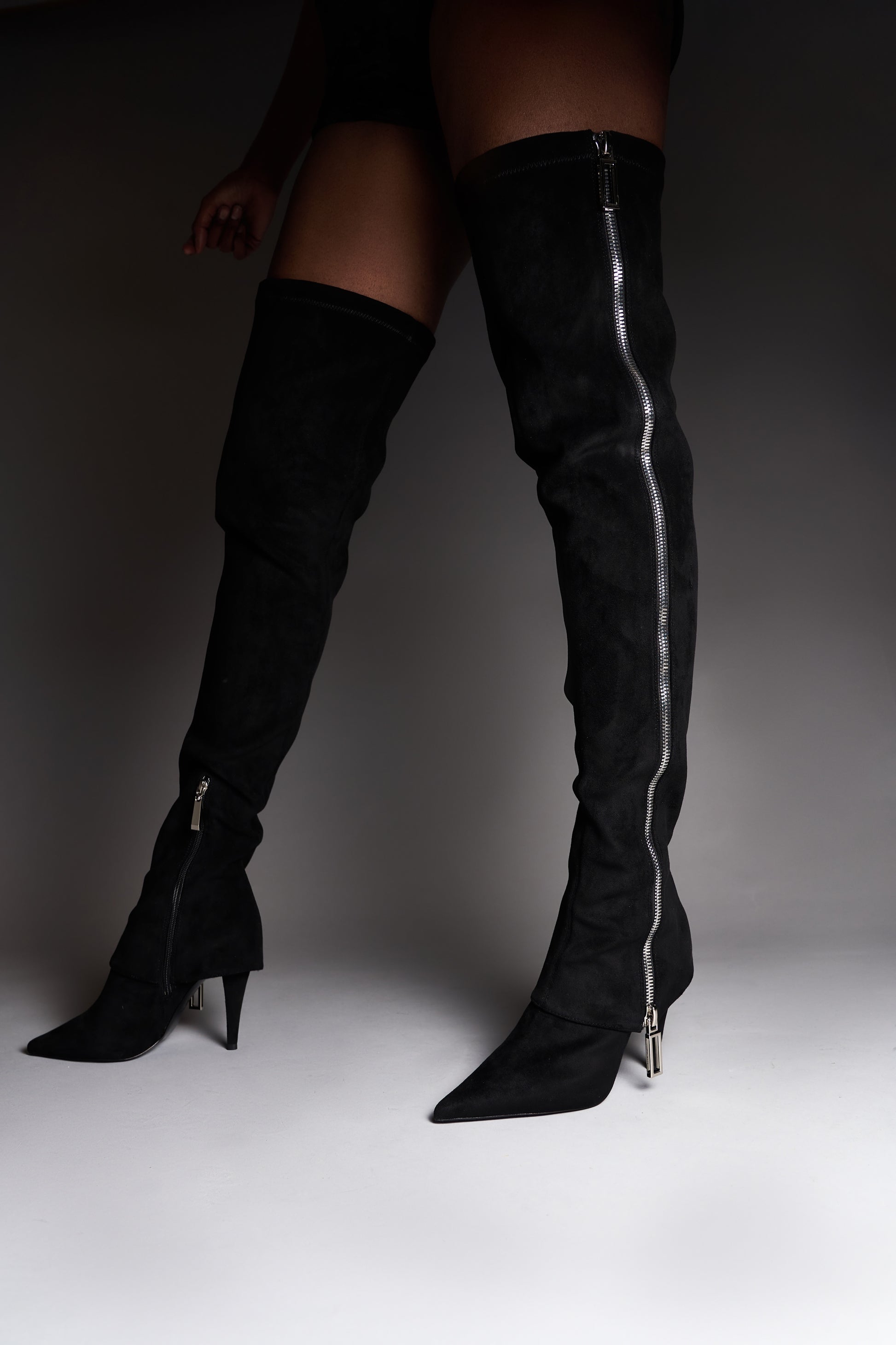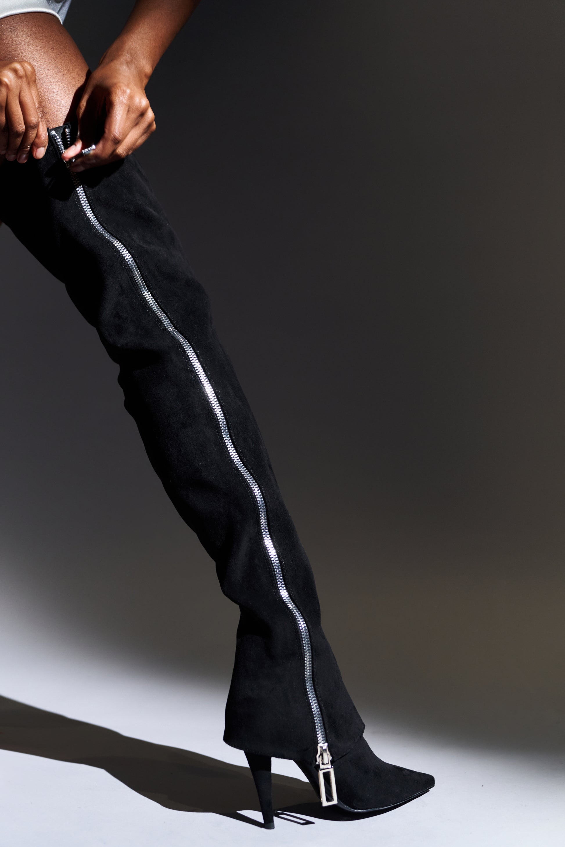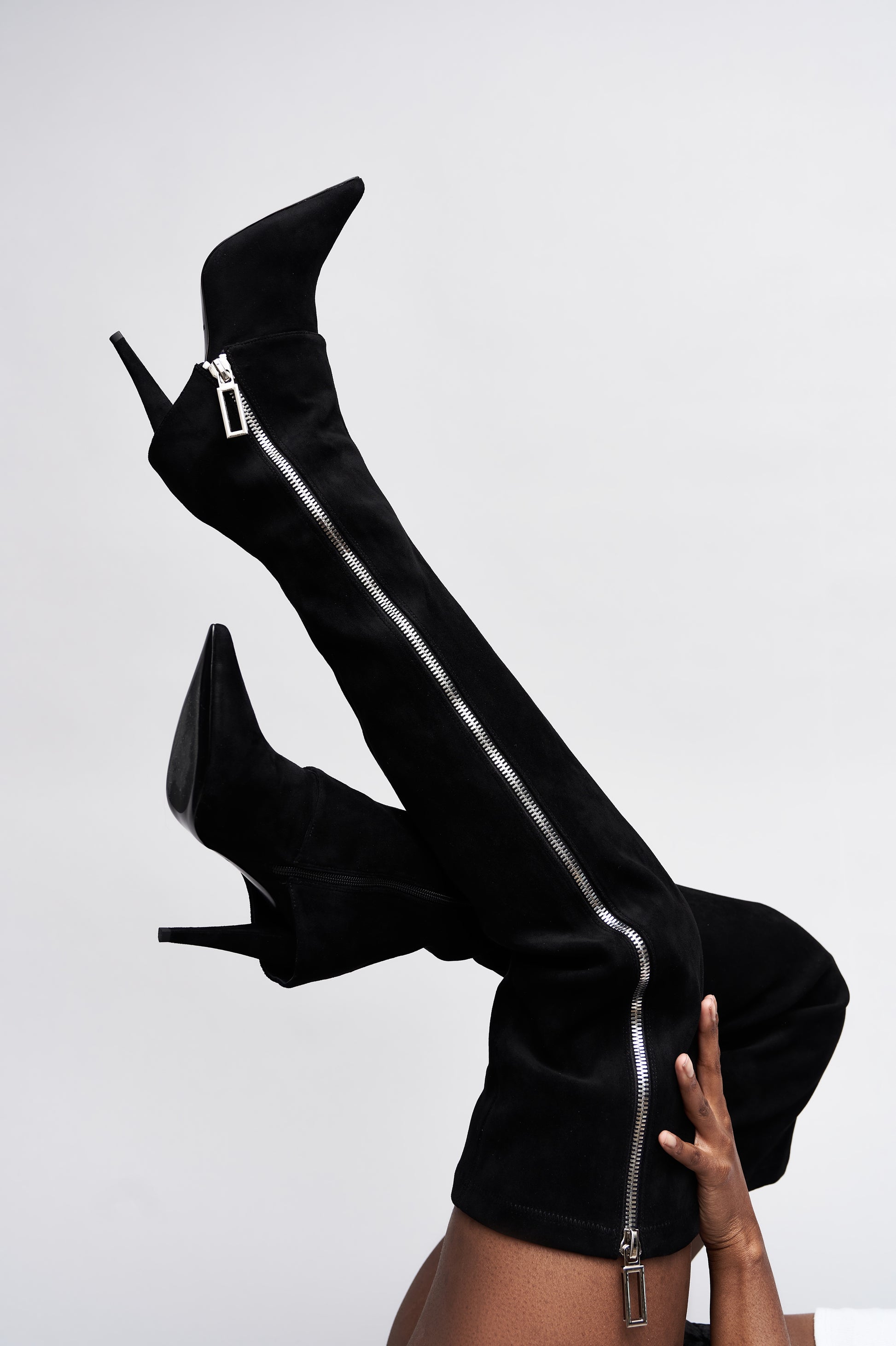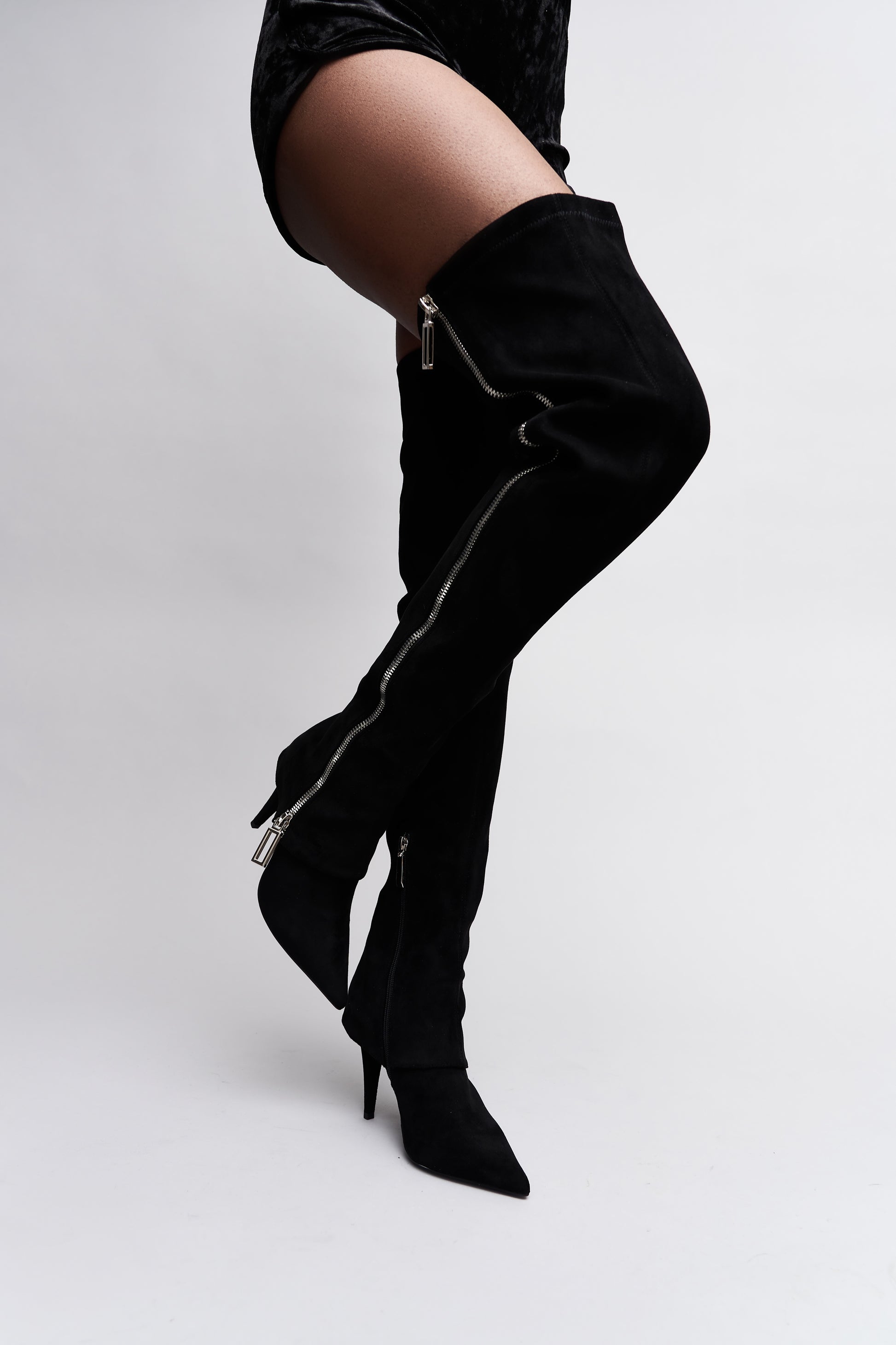 Made with a high suede that stretched just enough to fit thick thighs and wider calves.